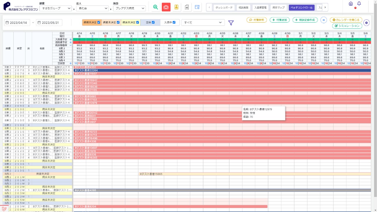 電子カルテの入退院予定や入院相談管理機能から入院予定と判断された予定患者を稼働予測に組み込むことで、将来日付のベッドコントロールが可能に