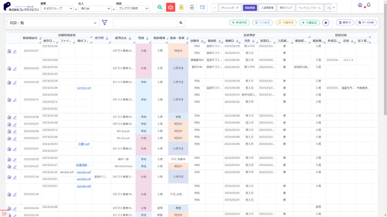 地域の急性期病院や在宅介護施設から日々問い合わせのある入院相談情報を「ここりんく」で一括管理し、連携室から医師への入院判定依頼も同システム内で完結