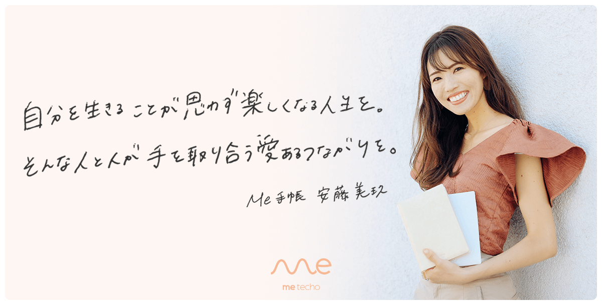 そんな願いを込めて、20人のプロジェクトメンバーと共に製作されたMe手帳。Me手帳と共に、自分を生きることが思わず楽しくなる人生を送れる人が増えたら嬉しいです。