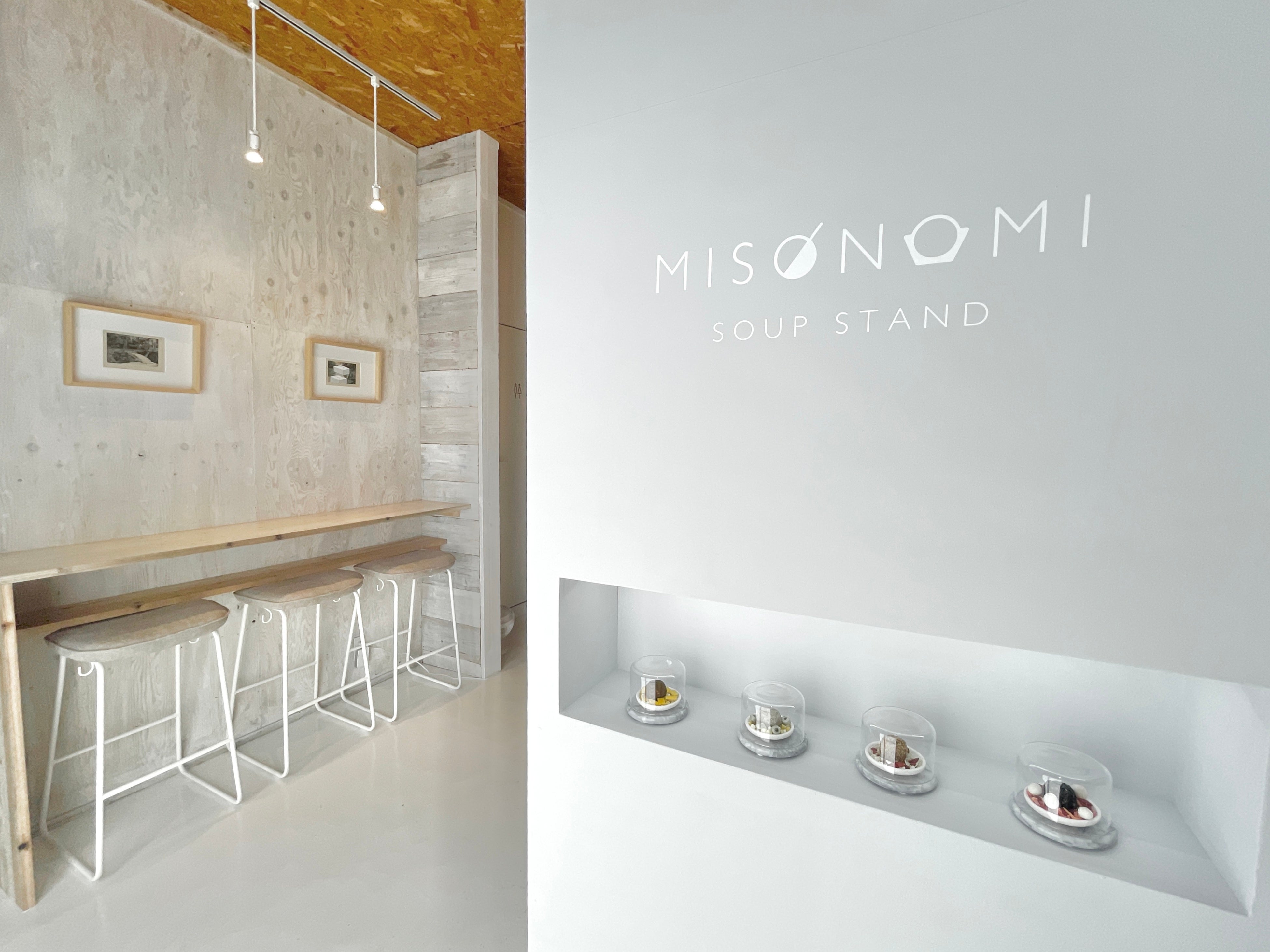 かつてはギャラリー空間だった店内では、さわひらき、岩井優、坂野充学などの現代アーティストによる作品展示と合わせてミソノミが展示されており、「アート」と「食」がボーダレスで楽しめ空間となっています。