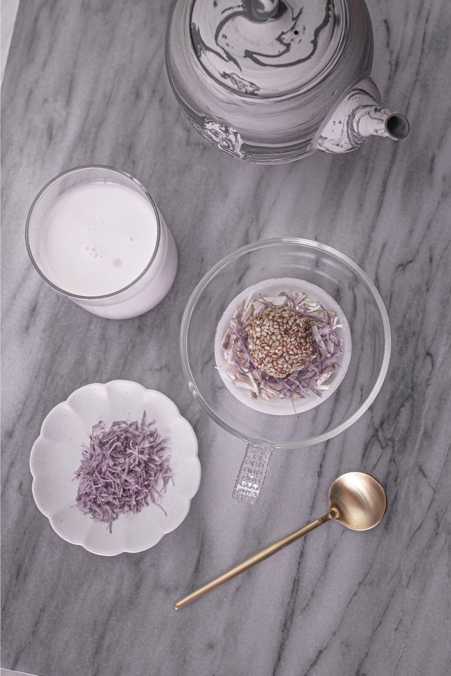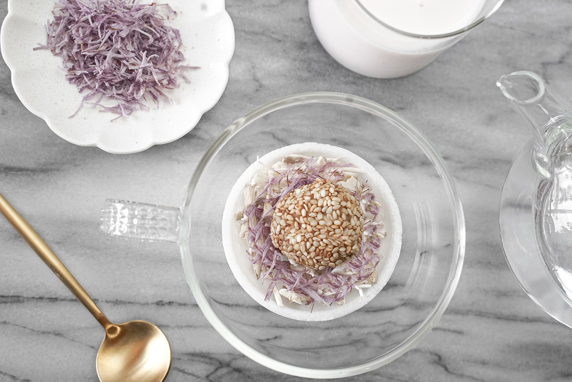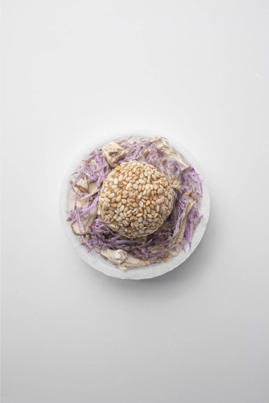 独特の香りと食感が魅力の舞茸と、秋の花でもある色鮮やかな菊の花びらを添えたスープ。のどぐろだしをブレンドした加賀みそに白ごまをトッピングし、華やかなビジュアルでありながら、食欲をそそる香ばしい食材が組み合わさった秋の花咲く新感覚の一杯。