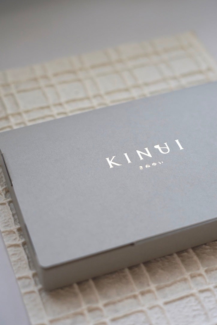商品そのもの以外に、お客様の開封体験もよりラグジュアリーにお楽しみいただけるよう、配送箱をKINUIらしい繊細なゴールド箔ロゴをあしらいグレーを基調とした洗練されたデザインへリニューアルいたしました。