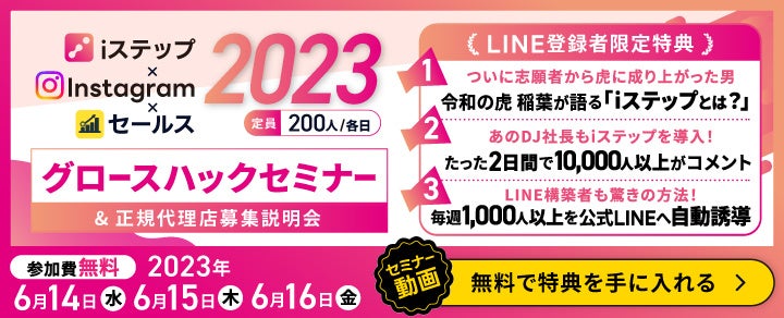 セミナー名:iステップ×Instagram×セールス グロースハックセミナー&正規代理店募集説明会