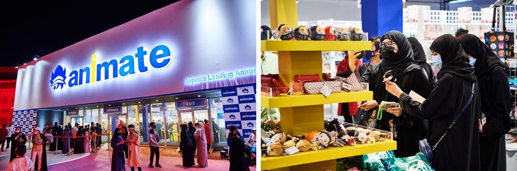 今回参加しているアニメコンテンツに関するグッズを約2,000種類販売。 これまでEXPOなどでのブース出展はあったものの、店舗型としては中東初出店。 1フロアあたりの平米数としては池袋にあるアニメイト本店に匹敵する広さでした。