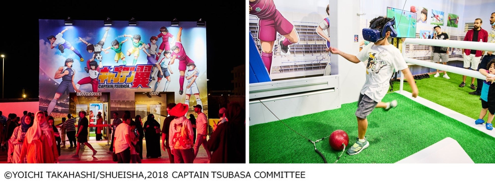サウジアラビアはサッカー大国という背景もあり、「キャプテン翼」は昔から愛されているアニメの一つ。シュートを決めるVRゲームを楽しむ親子で賑わっていました。