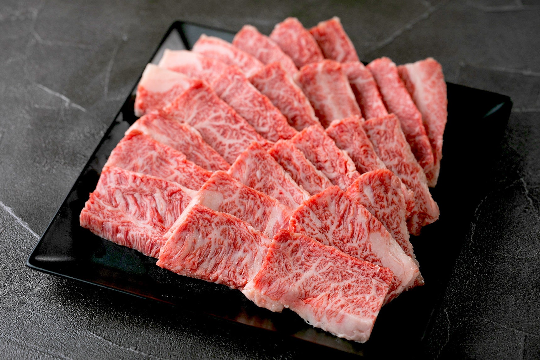 コクと旨味の強いタテバラとインサイド、こってりした旨味のあるバラヤマにサシの見事なナナメを合わせたカルビです。上カルビにも選ばれる部位を、最高級和牛でお届けします。
