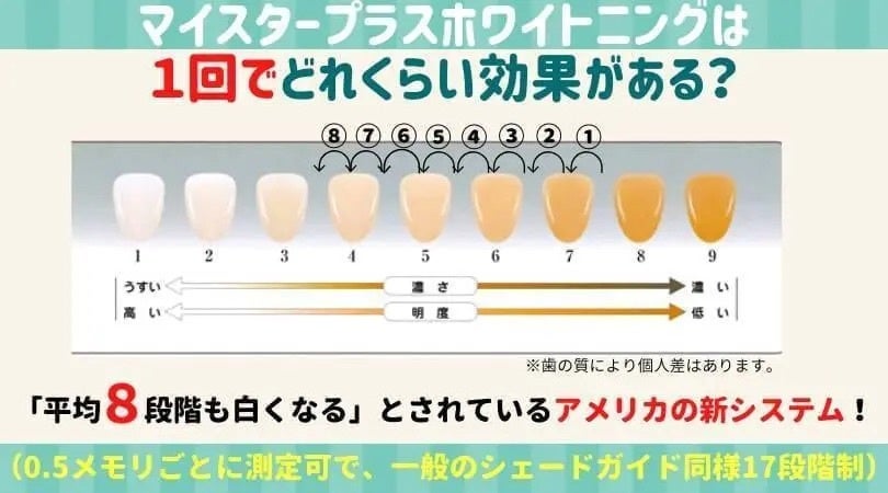 → はい。個人差はありますが、1回で平均8段階以上白くなる方が多く、初回施術でもしっかり違いを感じていただけます。