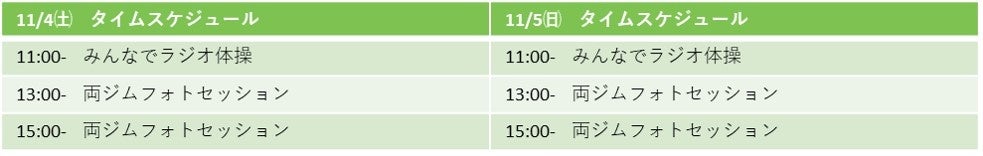 また(1)11/4㈯14:00~ (2)11/5㈰12:00~には「スポーツクラブ メガロス立川」による、その場でできる簡単ストレッチ&軽い筋トレを実施いたします。ビフォーアフターでのカラダの変化を感じていただきたいと思います。