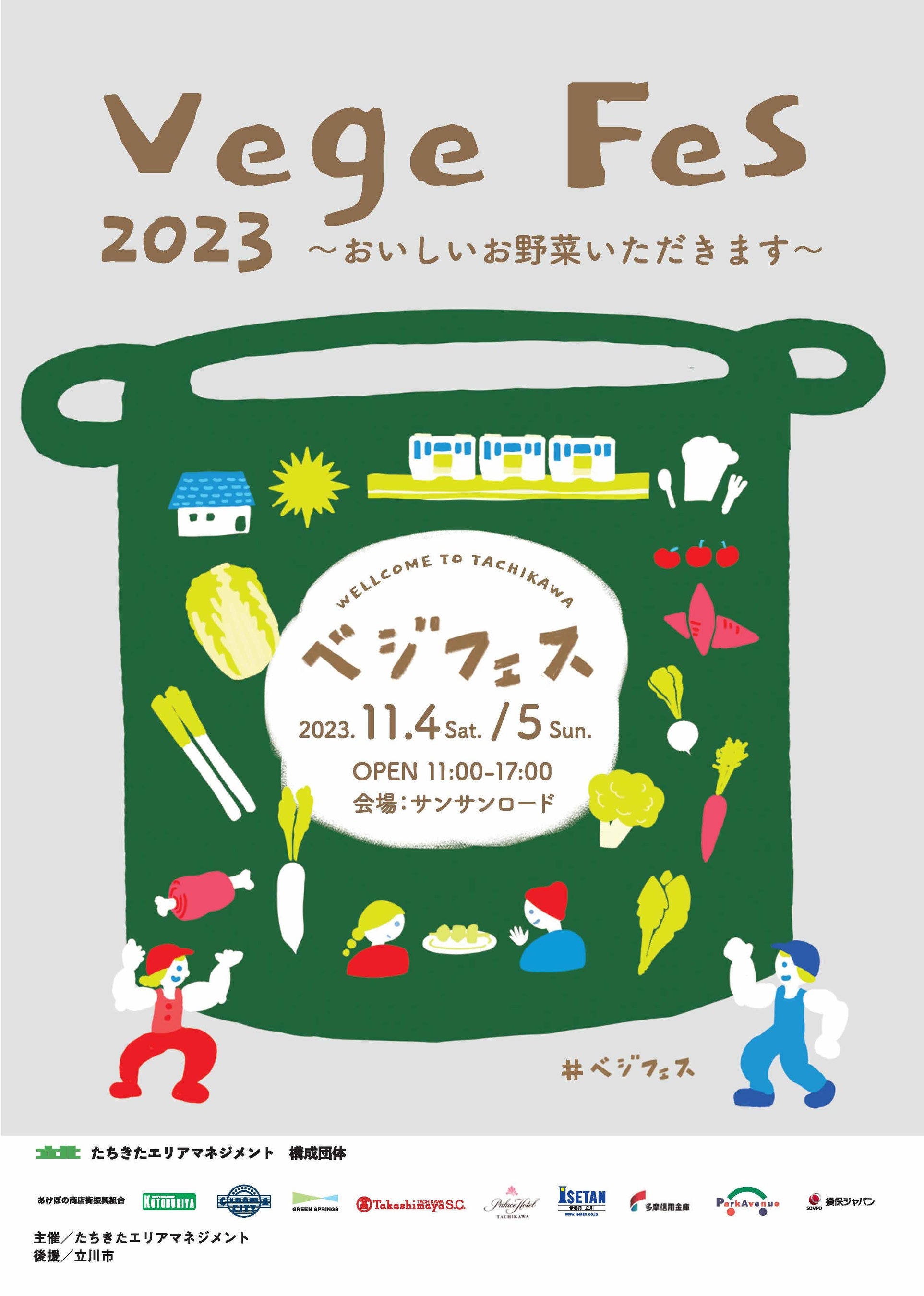 たちきたエリアマネジメントは、 11月4日(土)・5日(日)サンサンロードを中心に、地域の生産者と地元を繋ぐイベント「ベジフェス~おいしいお野菜いただきます~ 」を開催します。