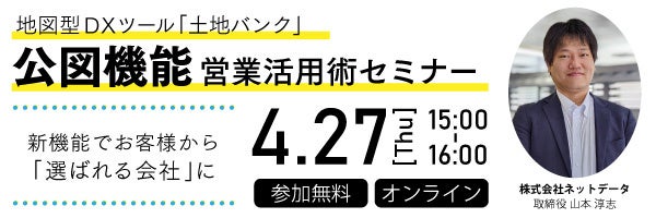 また、今回のアップデートを記念し、当社は4月27日(木)15時より、公図機能公開記念セミナーを開催いたします。セミナーでは公図機能のデモを使った具体的な操作方法、公図機能を活用してお客様に営業活動をする際のポイント等をお伝えします。