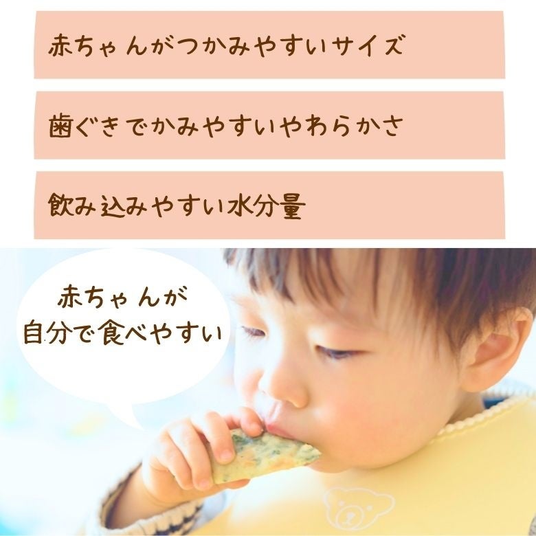 赤ちゃんが自分で食べられるような形と固さになっています。