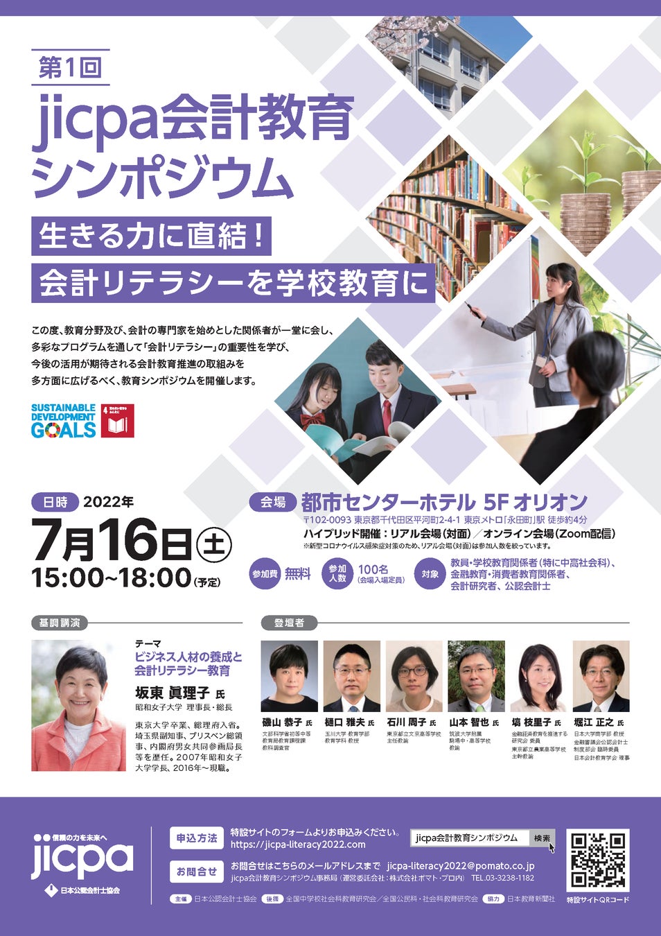 本シンポジウムは、「生きる力に直結!会計リテラシーを学校教育に」をメインテーマに掲げ、中学校・高等学校の教員・学校教育関係者、金融教育・消費者教育関係者、会計研究者、公認会計士、会計教育に関心のある方を対象に開催します。参加費は無料です。