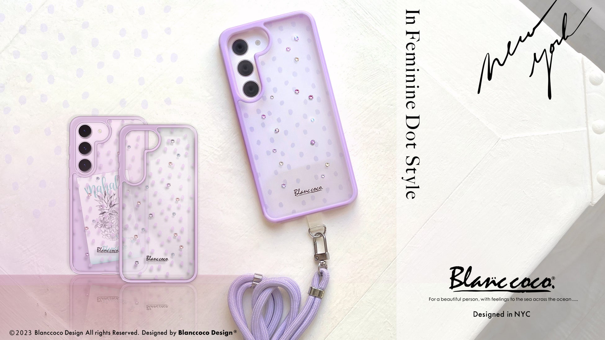 ・Blanccoco NY-Manhattan Light Hybrid Case with Long Strap for Galaxy S23/Lavender Dot