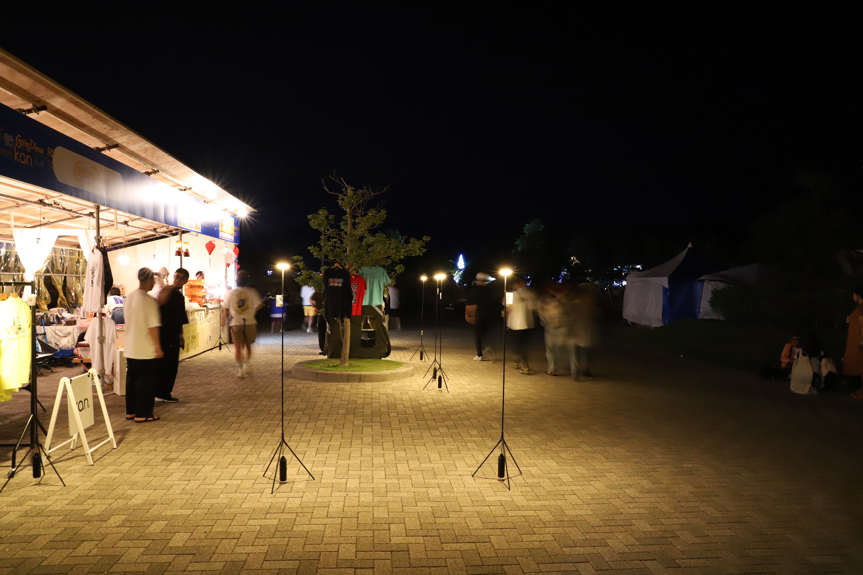 発電機レス、配線レス、騒音レス、バッテリー駆動のPoleStar Light®(ポールスターライト)は来場者だけでなく出店者からも大好評!