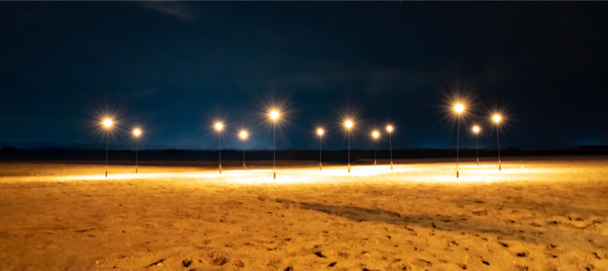 発電機レス、配線レス、騒音レス、バッテリー駆動で実現する自由な光源配置設計と路面安全性の確保