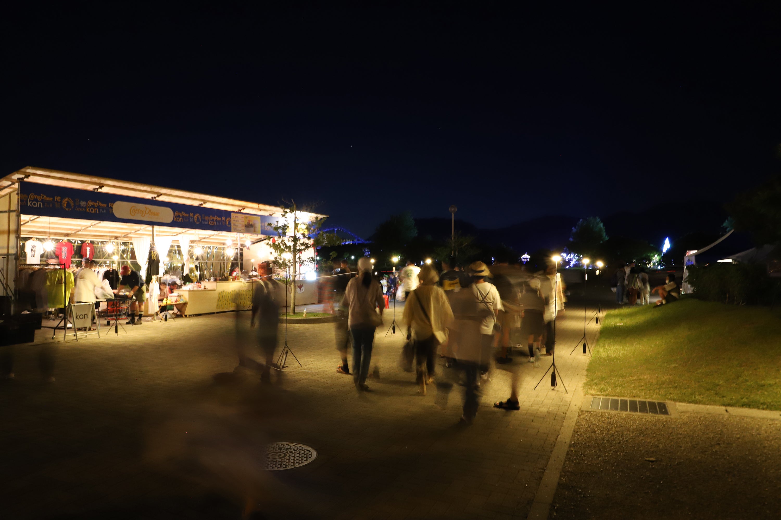 合同会社KAIMEN(本社:京都府京都市、代表社員:長﨑陸)は、2022年4月1日よりCCCグループが運営するGREEN FUNDINGにてクラウドファンディングを実施中の「PoleStar Light®(ポールスターライト)」を森、道、市場2022の会場にて、.HYAKKEI(ドットヒャッケイ)、COFFEE,PLEASE applications、ひらく湯と共同展示いたしました。発電機レス、配線レス、騒音レスのバッテリー駆動で屋外設置可能なPoleStar Light®(ポールスターライト)の利点を活かし、広いスペースの空間演出、店舗前スペースのゆるやかな境界の明示、店舗前イベントスペースと通路の分離、会場内の通路脇照明といった様々な用途での可能性を確認することができ、来場客だけでなく、他の出店者様からも好評を博しました。