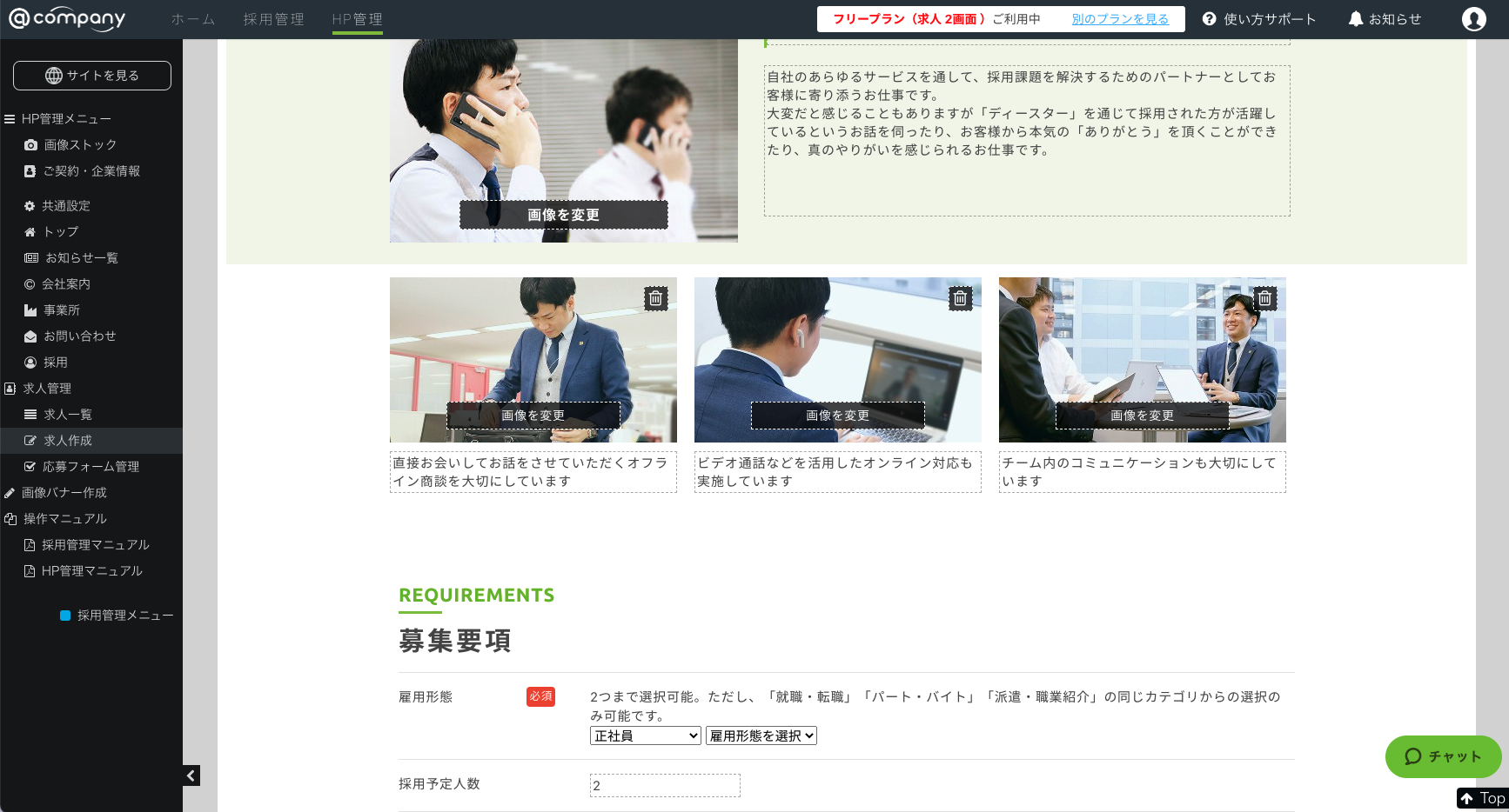 専門知識不要! 魅力的な採用ページがご自身で作れます