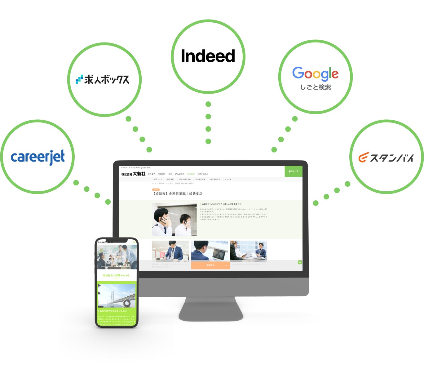 無料プランでも主要求人サイトへ連携! 求職者との接点が広がります