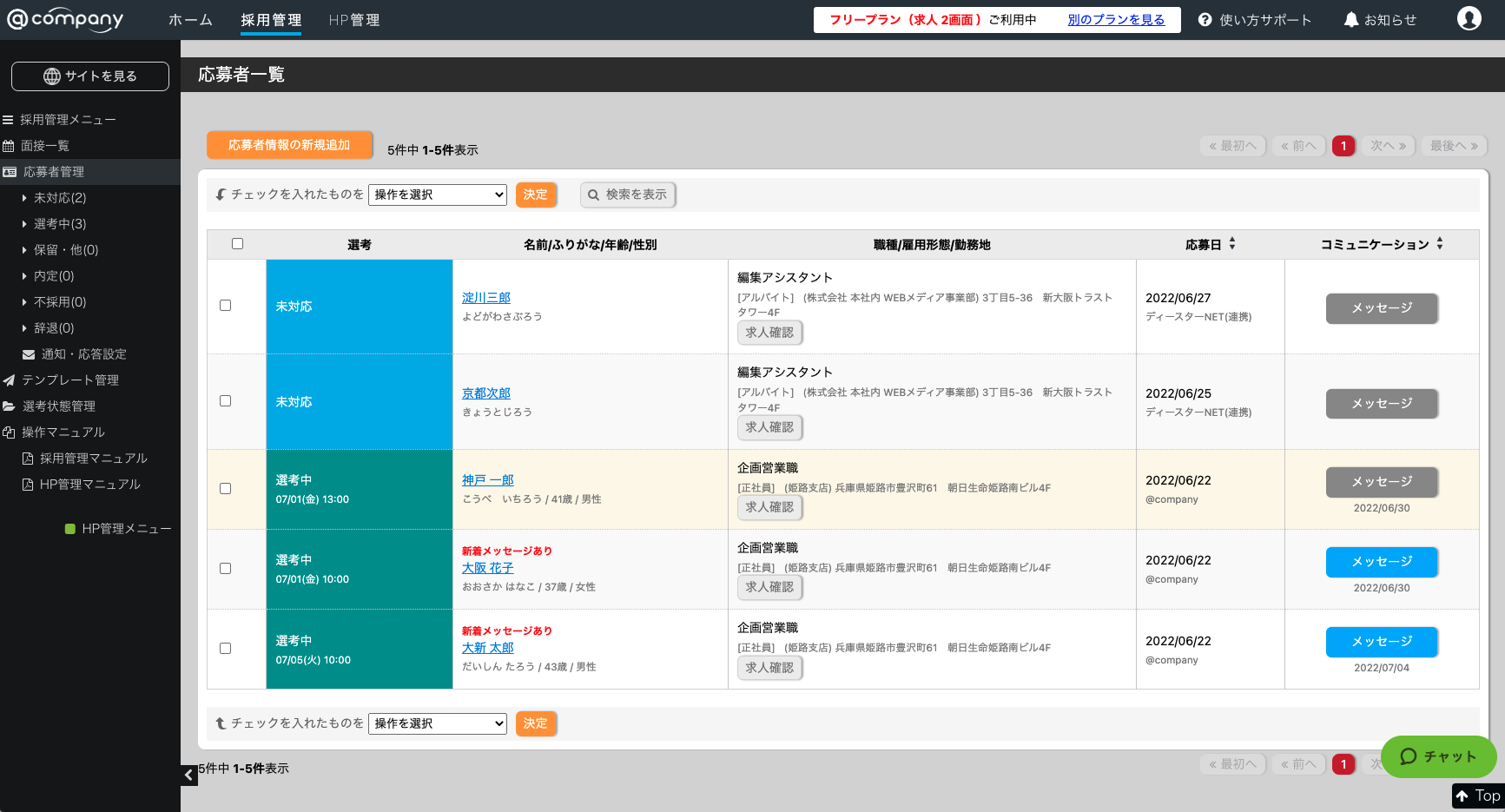 採用のDX化! 応募者や選考など採用業務が一括管理できます