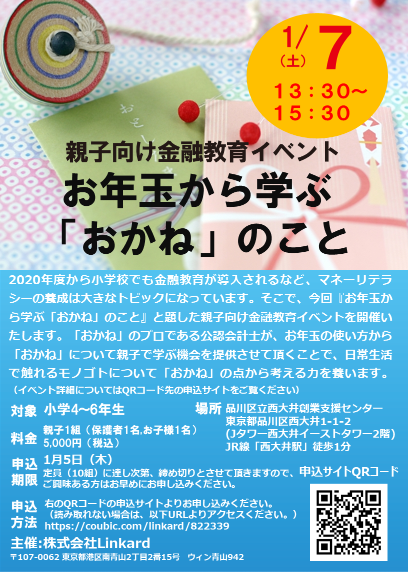 【株式会社Linkard】親子向け金融教育イベント<お年玉から学ぶ「おかね」のこと>開催のご案内