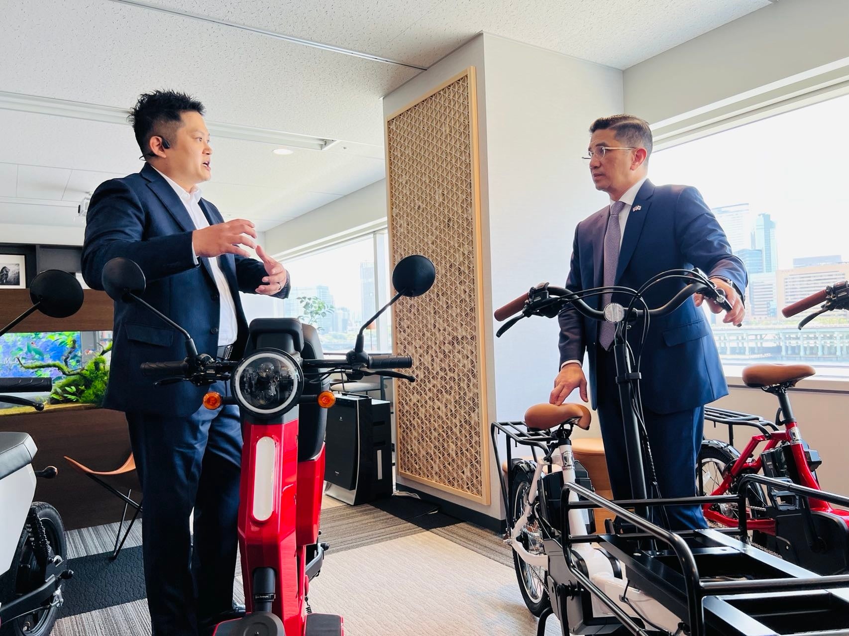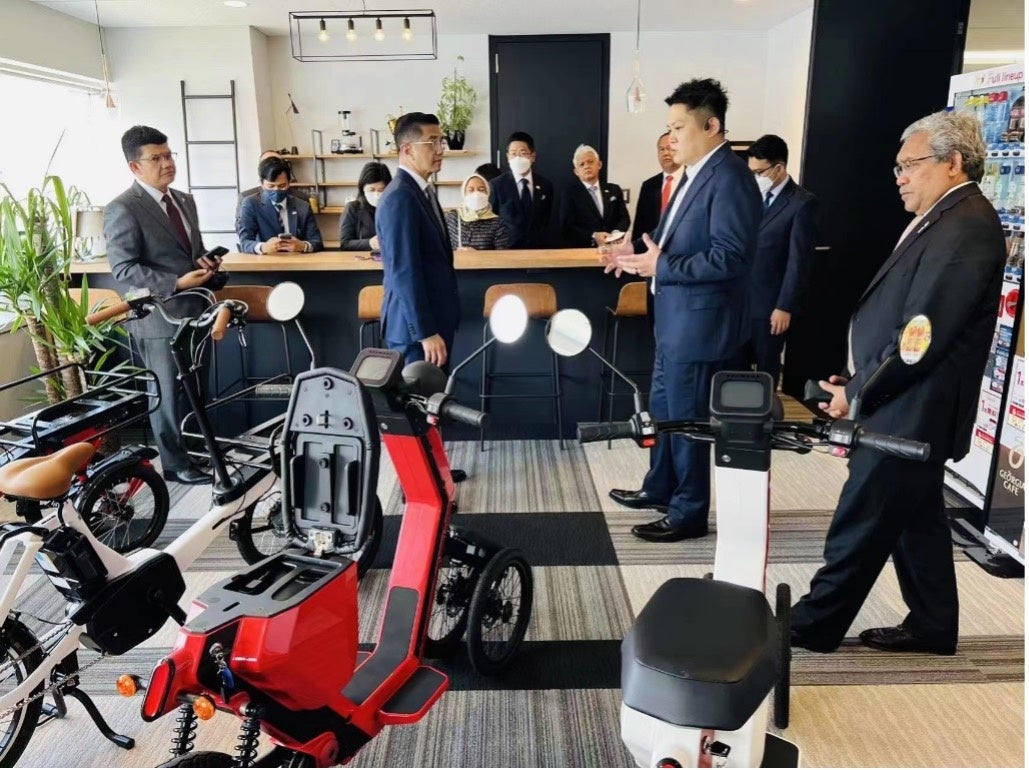 マレーシア政府は、5年ごとに策定される国家中期計画である「第12次マレーシア計画(2021~2025年)」の中で、2030年までの炭素排出量45%削減目標を掲げ、グリーン成長戦略を推進しています。その一環として、省エネ車普及率向上に向けて各種税制優遇措置や技術力のある外国企業を積極的に誘致しており、今回のアズミン・アリ貿易産業相の来日に合わせて、豊田TRIKE株式会社に出資する当社本社訪問が実現しました。