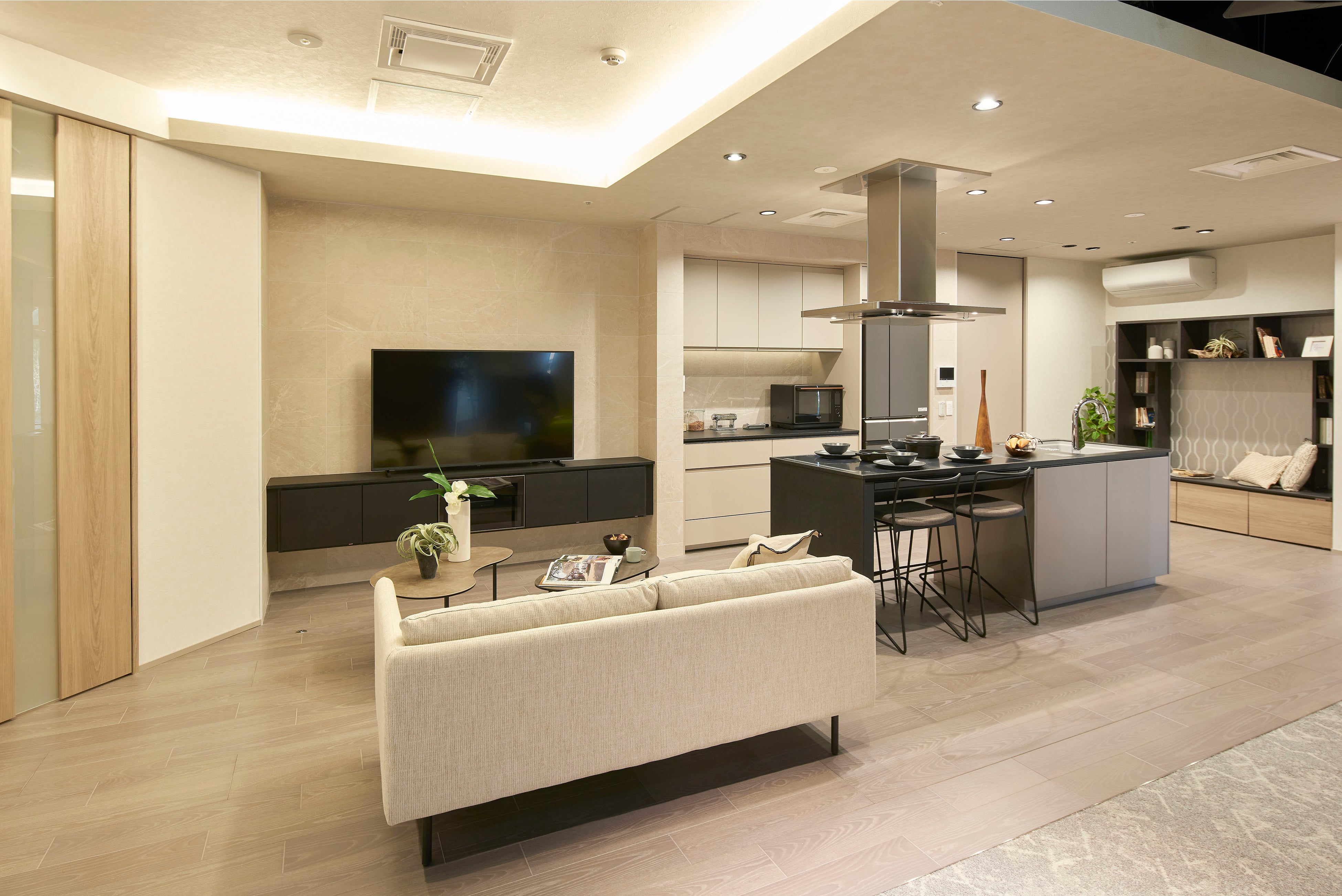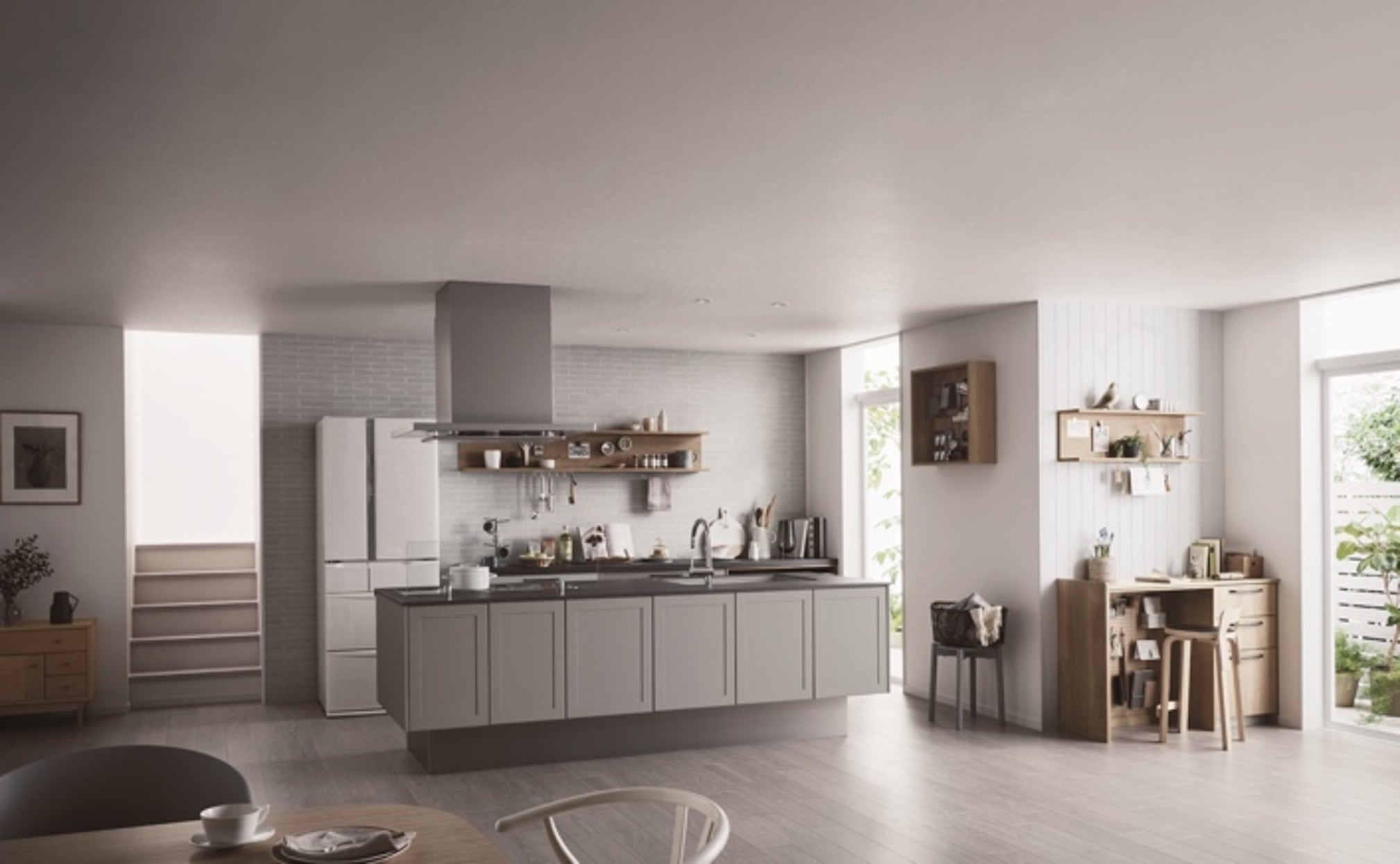 キッチン。家族のライフスタイルにあわせて選べる魅せる収納にこだわり、