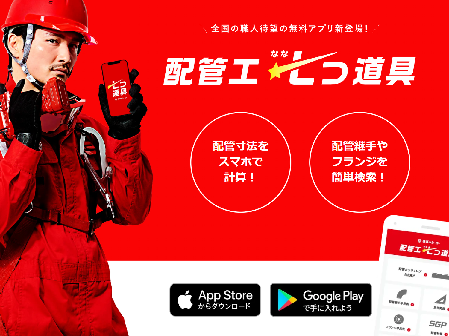 「配管工七つ道具」は、配管などの寸法をスマホでカンタンに計算できる配管工職人向けのアプリケーションです。