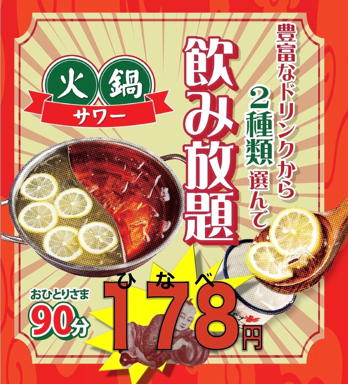 師走まで呑んで呑んで呑みまくれ!!!中華居酒屋 「福包酒場(フーパオサカバ)火鍋サワー178円(ひなべ)飲み放題キャンペーン開催!【11/16(水)〜11/30(水)限定!オープンから19時まで!】