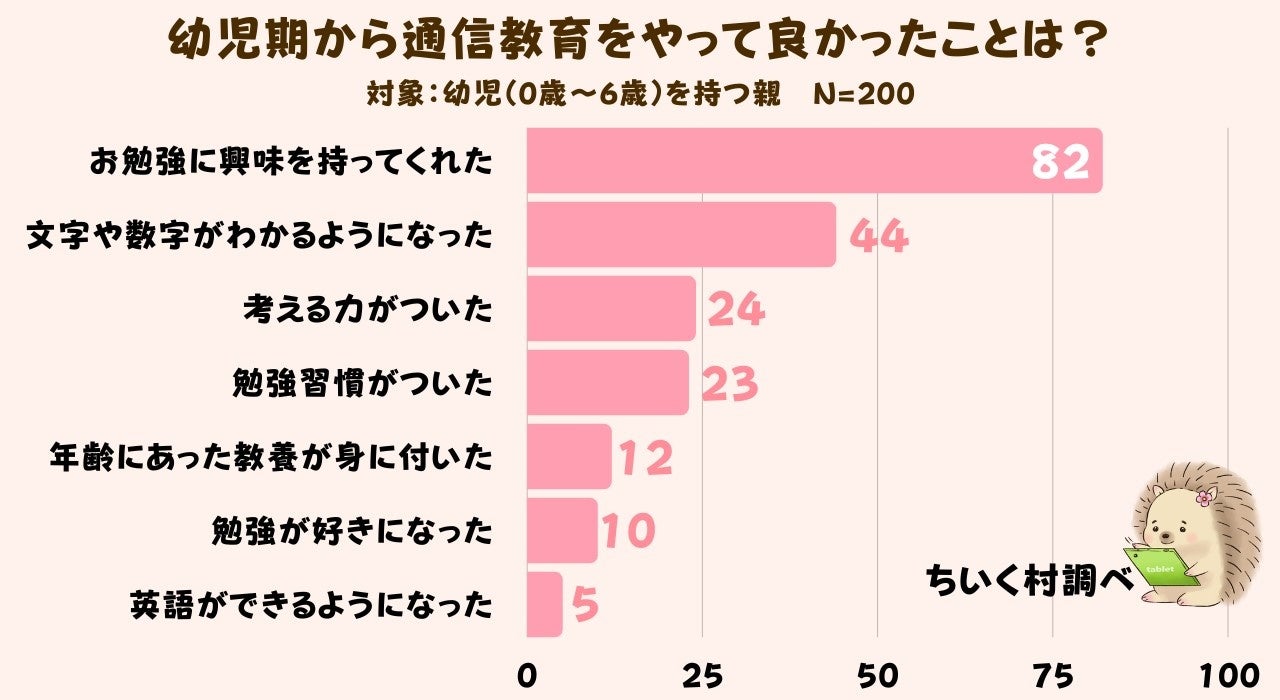 幼児期から通信教育をはじめて良かったことを聞いた結果は、次の通りでした。