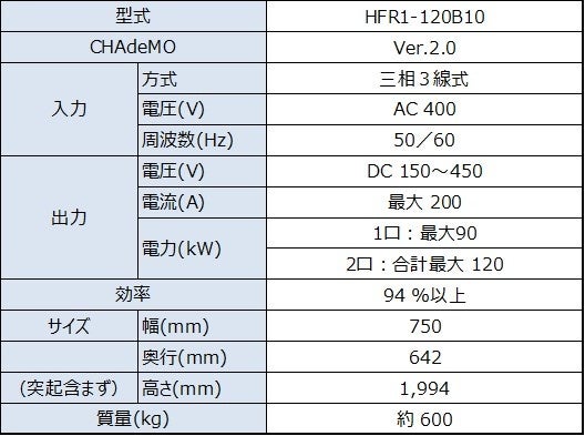 - 2台同時最大出力120kW(1台時最大出力90kW)