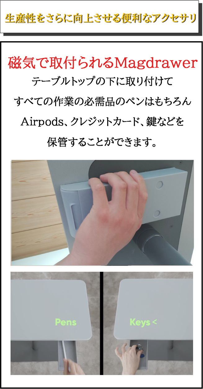 付属品の磁石つきの引き出しで小物を入れる事も可能です。