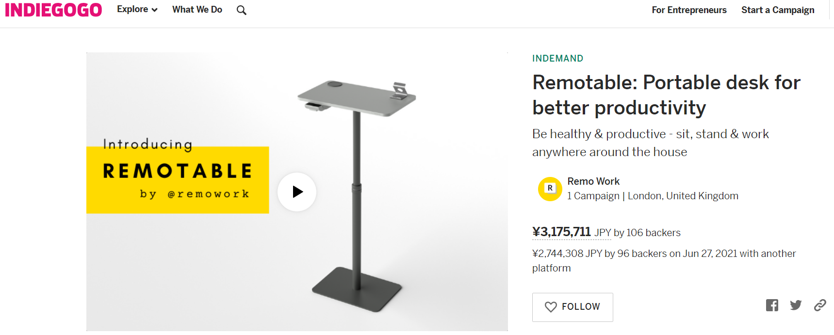 日本の代理店、ディア配送(代表取締役:ディア配送、本社:静岡)はイギリスのメーカーの商品「Remotable(リモテーブル)」を日本のクラウドファンディングサイト「makuake(マクアケ)」にて6/17 17時~7/30まで販売開始します。