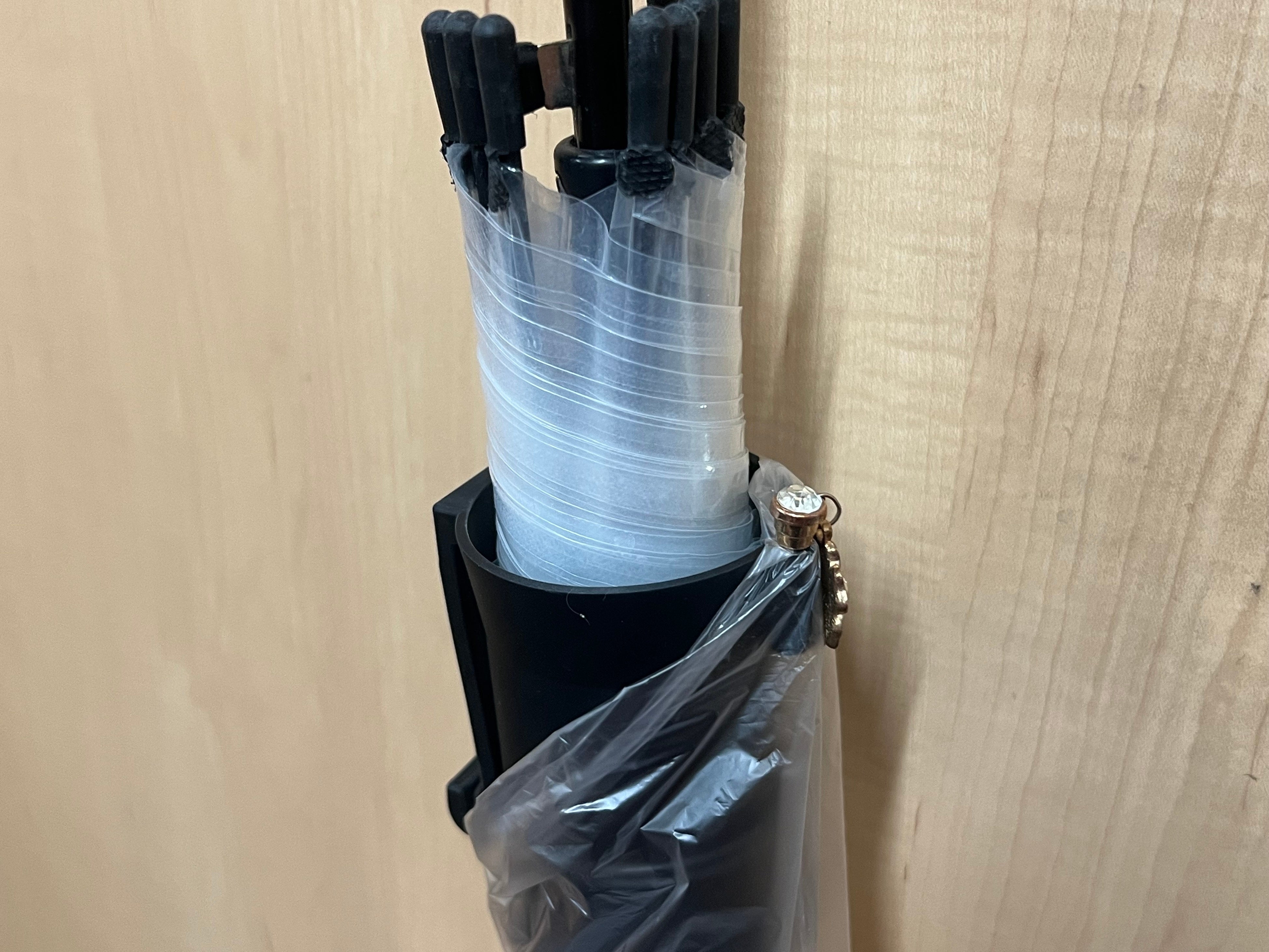 ショッピングモールや百貨店での傘のビニール袋使用する際には、止める事も可能。