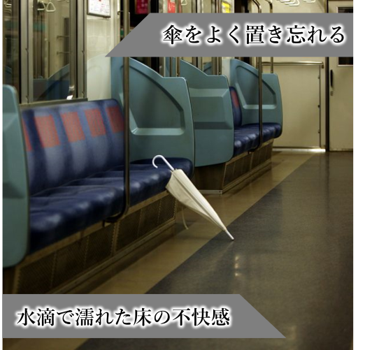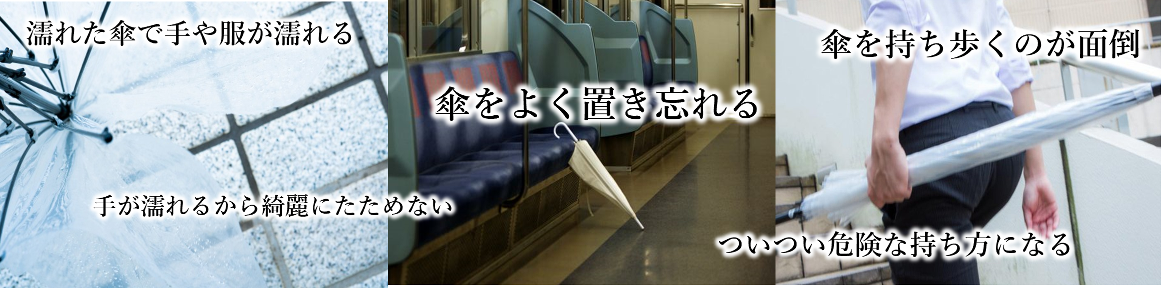 傘の「不」を解決する事で、電車やバスでの傘の置き忘れの削減、傘用ビニール袋の削減が可能になります。