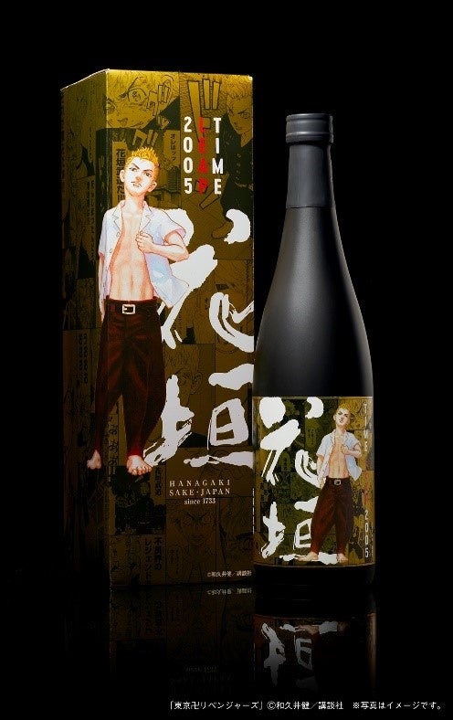 南部酒造場は以前より熟成酒の醸造に力を入れており、自社の熟成庫には多くの日本酒が眠っていますが、その中から主人公「花垣武道」が初めて過去に戻った2005年に醸造された日本酒が奇跡的に見つかりました。これは地元産(福井県大野市)の酒米・五百万石で醸した純米大吟醸で、17年の時が創り出した風格と円熟したまろやかさは見事なもので、「これはこの企画にふさわしい商品になる」と確信しました。何度失敗しても決して折れることのない、そんな芯のある男「花垣武道」を表しているような、ほろ苦く、奥深い味わいの熟成酒です。パッケージデザインは、熟成酒をイメージする黄金色(ゴールド)を用いて、過去の「花垣武道」が登場する漫画のワンシーンを美しく印象づけています。
