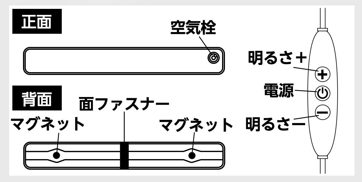 ・背面2か所にマグネット、1か所に面ファスナー付属