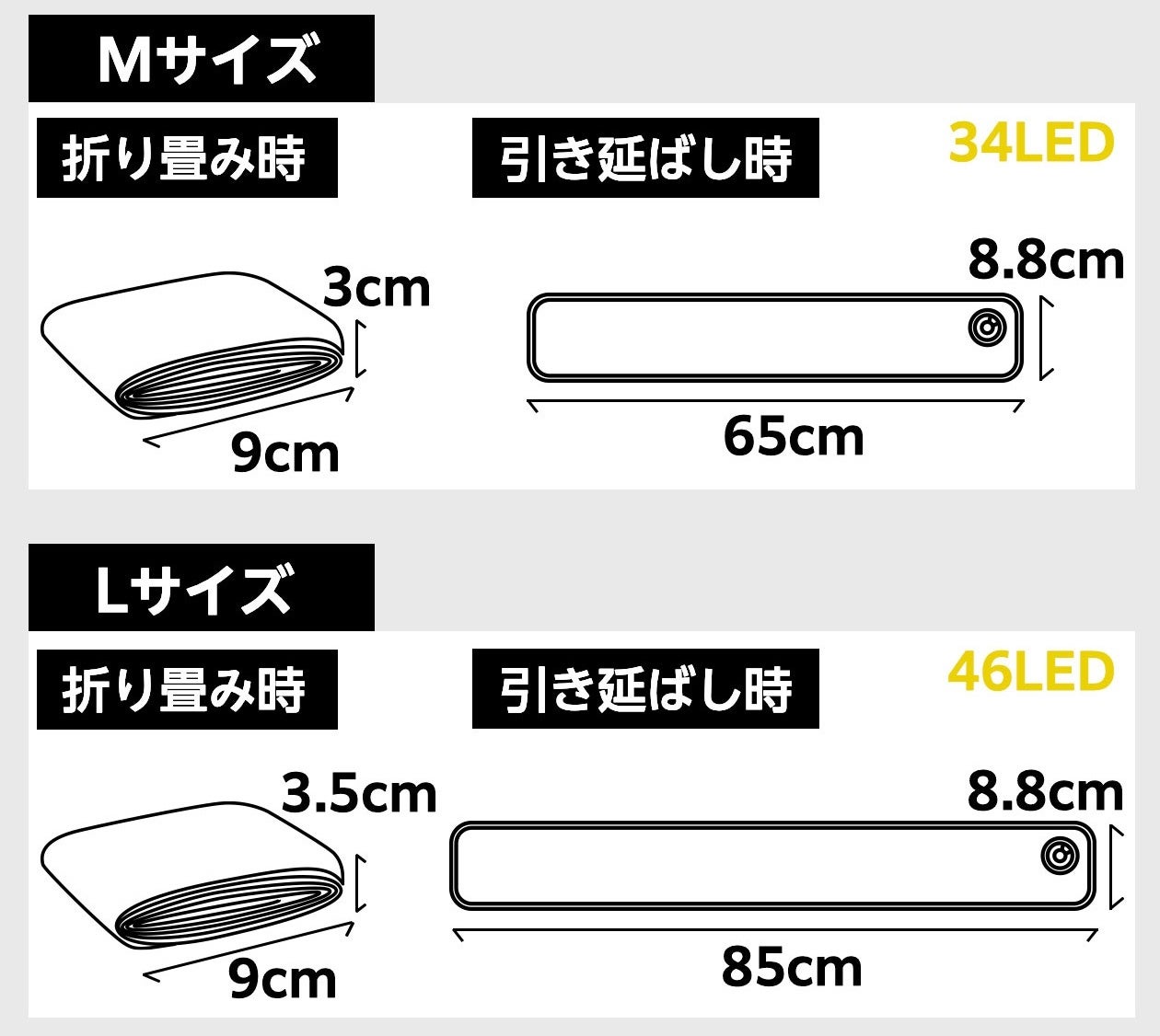 LEDの数:Mサイズ65cm-34個 / Lサイズ85cm-46個