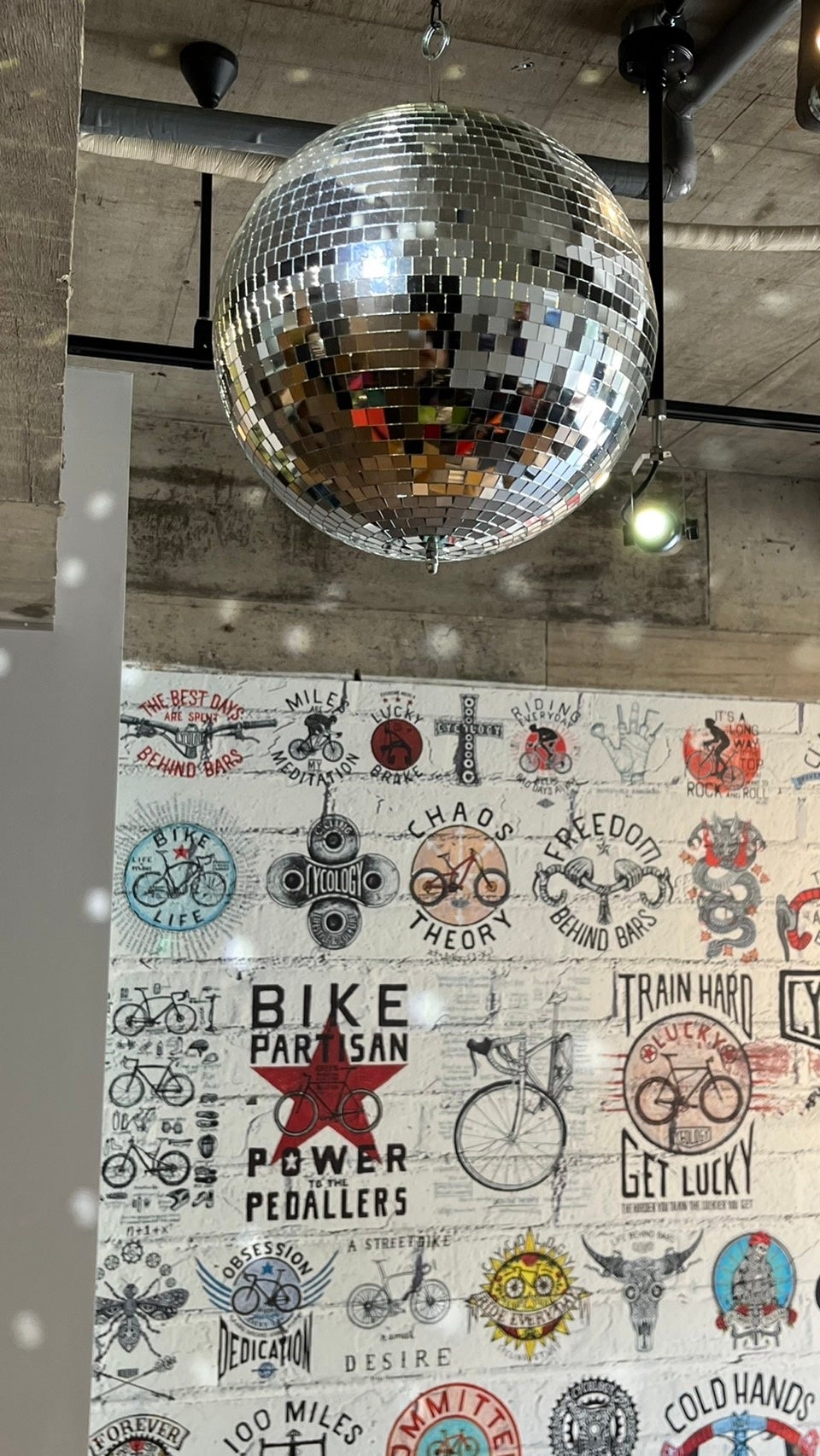 店内にレッドカーペットを広げ、ミラーボールを回し、サイクリストでもあるプロのサックスプレイヤーが生演奏でショーを盛り上げます。