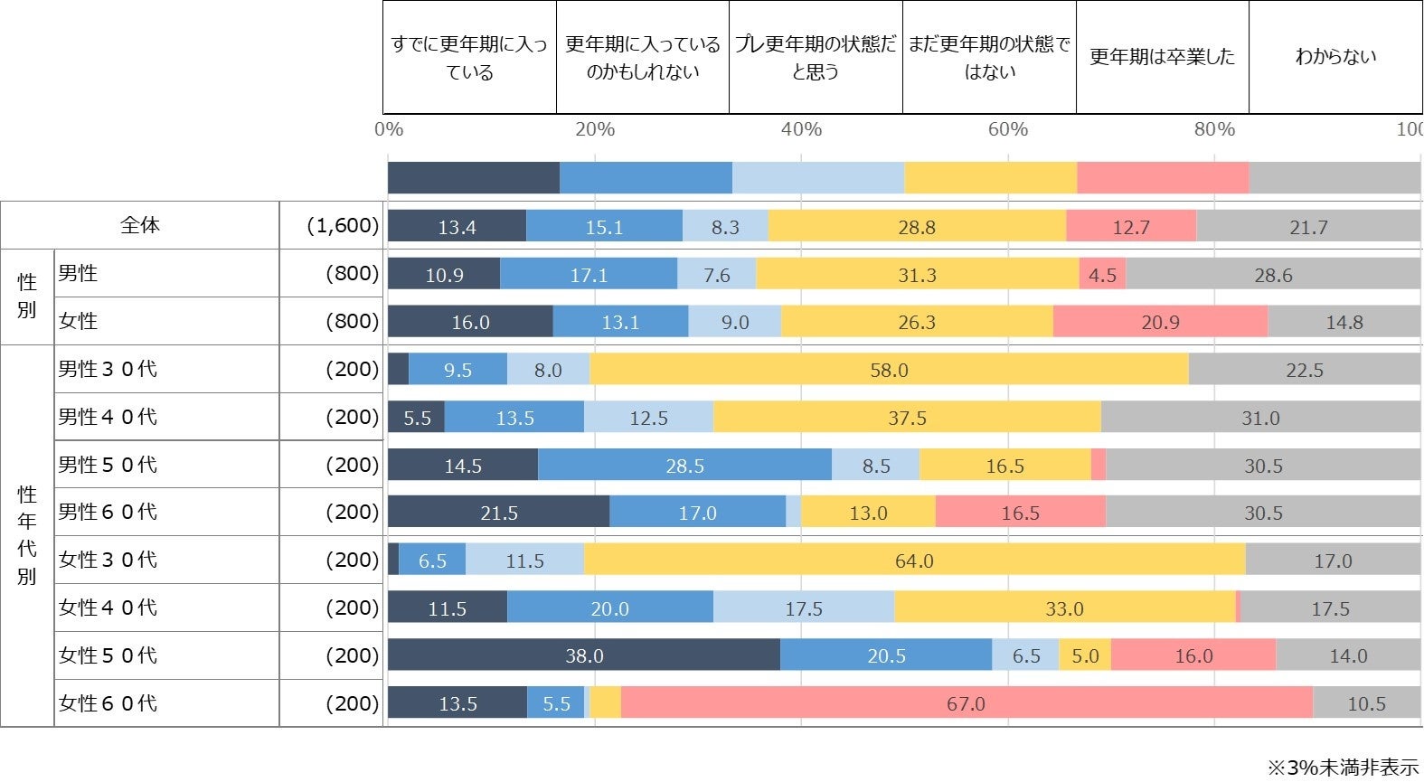 更年期を受容したくない女性「抗年期」層、自覚しない男性「控年期」層が存在