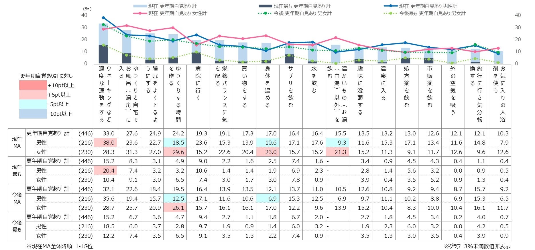 男性も女性も更年期の自覚のある人の66%は、対策に向けなんらかの“アクション”を実施。