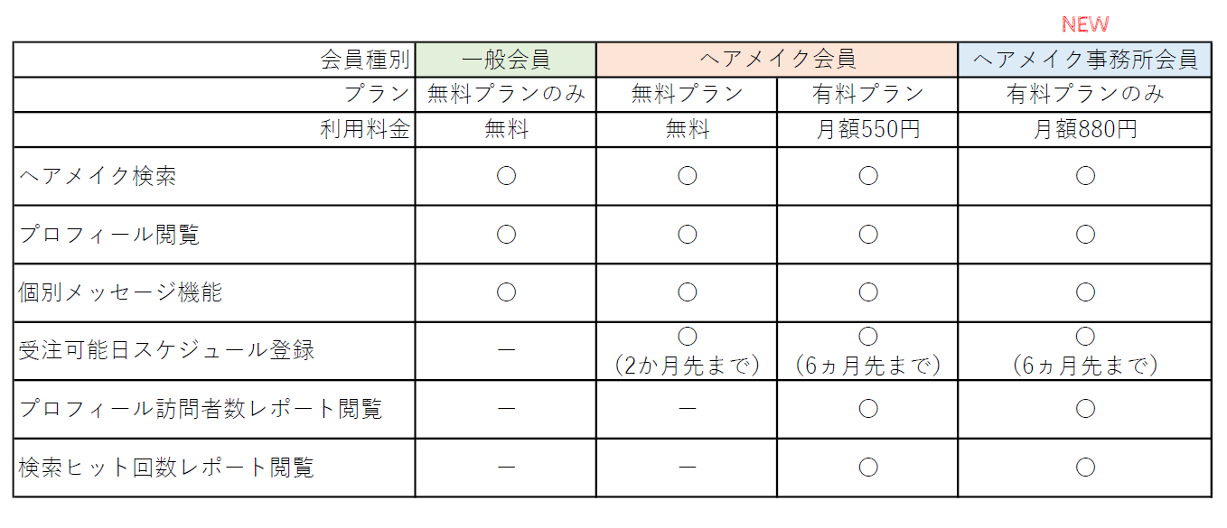 ■MakeSearch(メイクサーチ)の会員種別とプラン