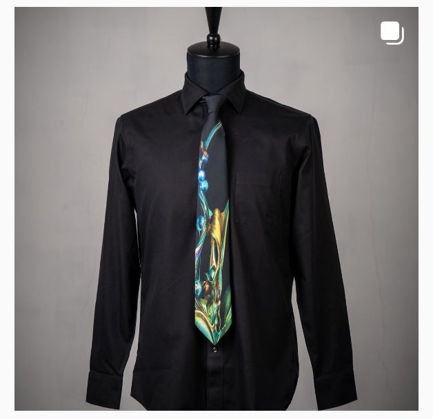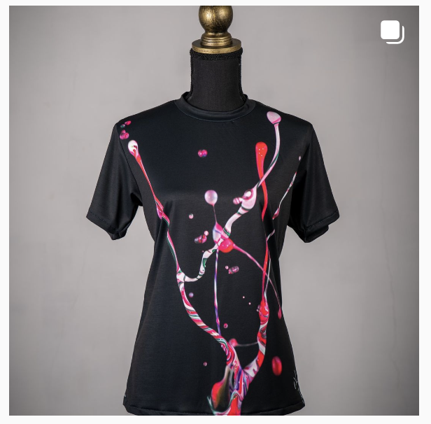 をデジタル捺染技術を用いSound of Ikebana Fashionに展開したシルクタイ及びカットソーの展示を