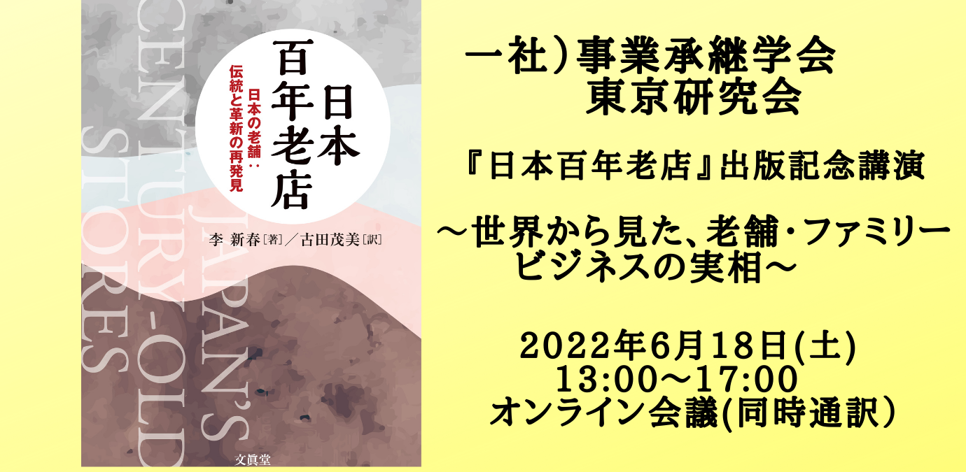 中山大学の李新春教授による画期的な日本の老舗の真価と現代的な意義を世界的に類を見ない新たな角度で研究分析した良著の翻訳本が出版されるにあたり、事業承継学会のグローバル発信・国際交流を企図して、著者の基調講演ならびに日本の老舗研究者の方々を迎えて賢者対談を開催します。