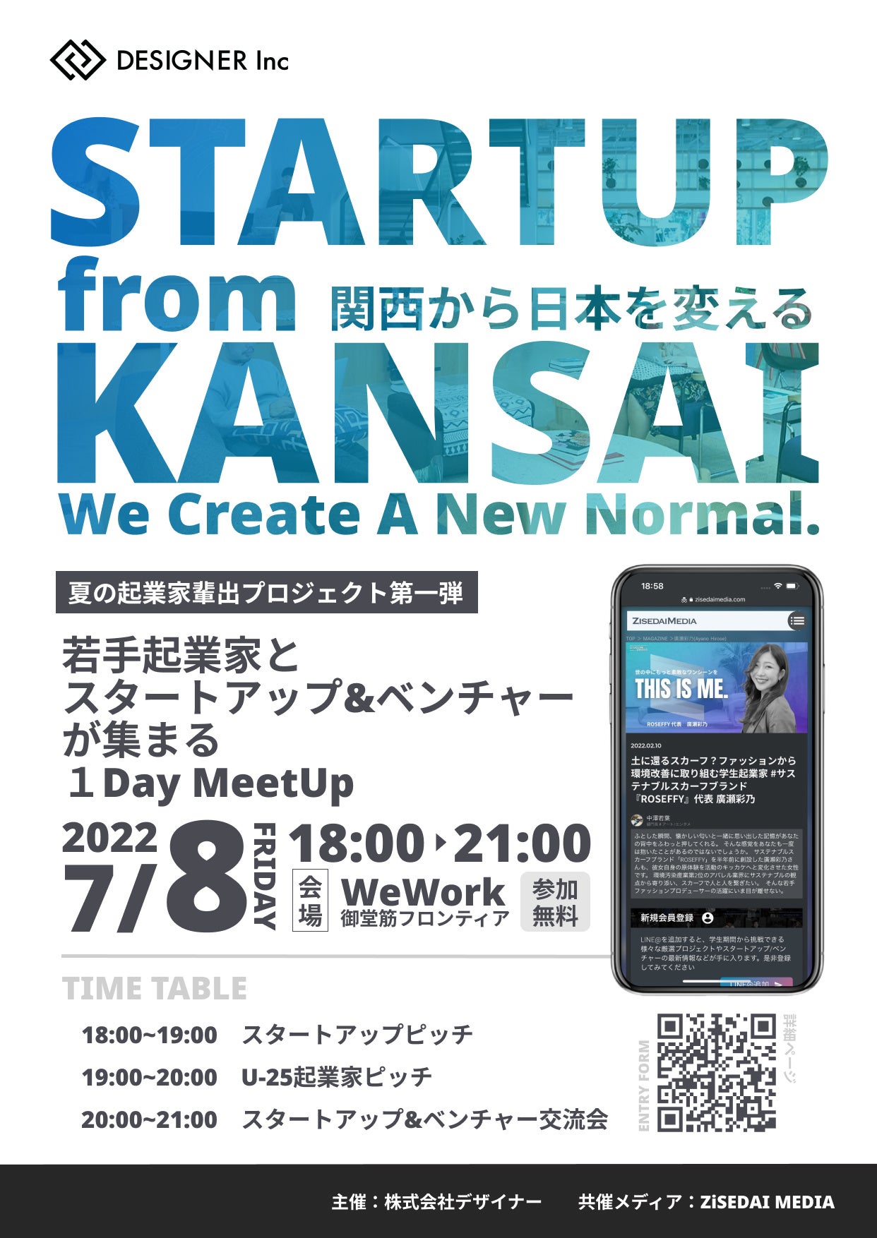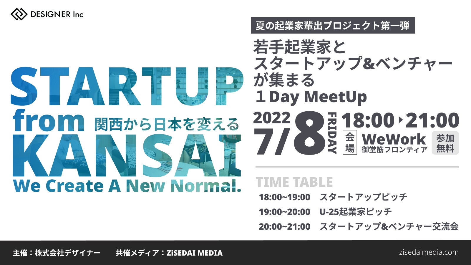 若手イノベーターとスタートアップ/ベンチャーを繋ぐ「ZiSEDAI MEDIA」を運営する株式会社デザイナー(大阪府大阪市)がスタートアップ/ベンチャーミートアップ「STARTUP from KANSAI(スタートアップfrom関西)」を開催いたします。また、本日より一般企業様/一般参加者様のエントリー受付も開始します。