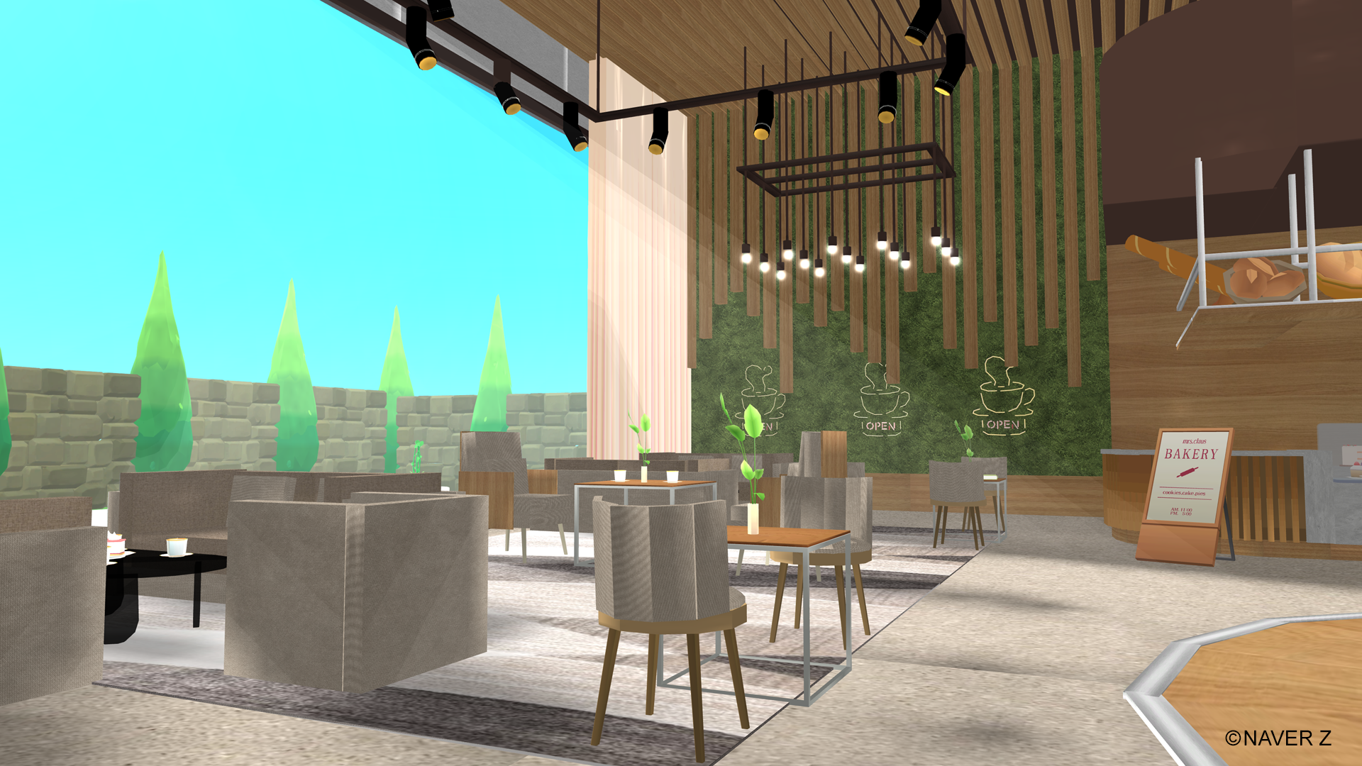 実店舗の主要な要素を組み込みながら、既存のZEPETOユーザーに人気なモダンな内装に仕上げることで、親しみやすく居心地の良い空間を目指しました。また、“ソフトバンク”や“ワイモバイル”をご利用のお客様以外のユーザーにも足を運んでいただきやすいよう、ワールド内に白戸家のお父さんやふてにゃんと記念写真が撮れるフォトゾーンやアイテムを購入できるマネキンを設置しています。