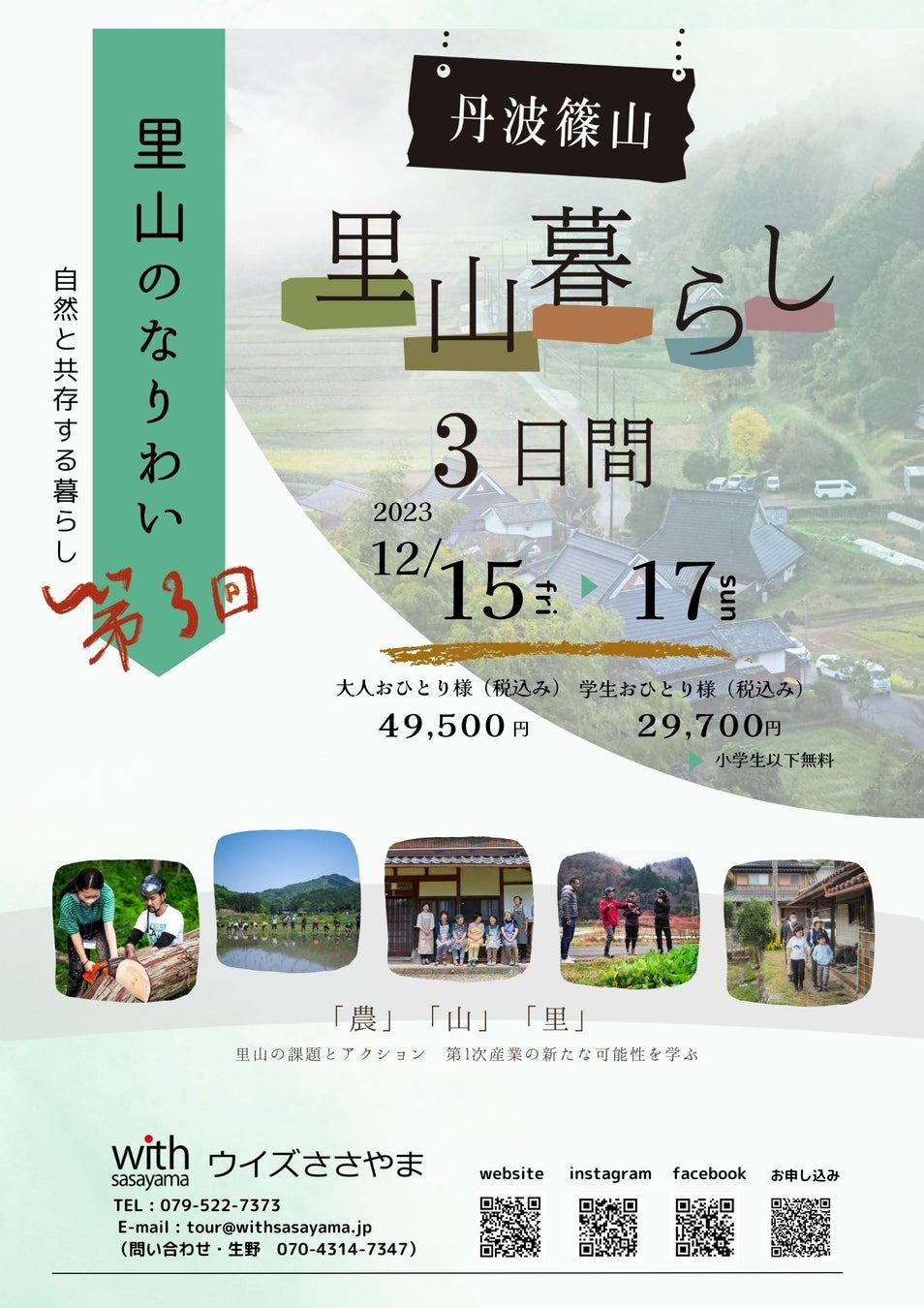 令和5年度 兵庫県丹波篠山市の観光/体験型ツアー『里山暮らし 3日間』実施のお知らせ