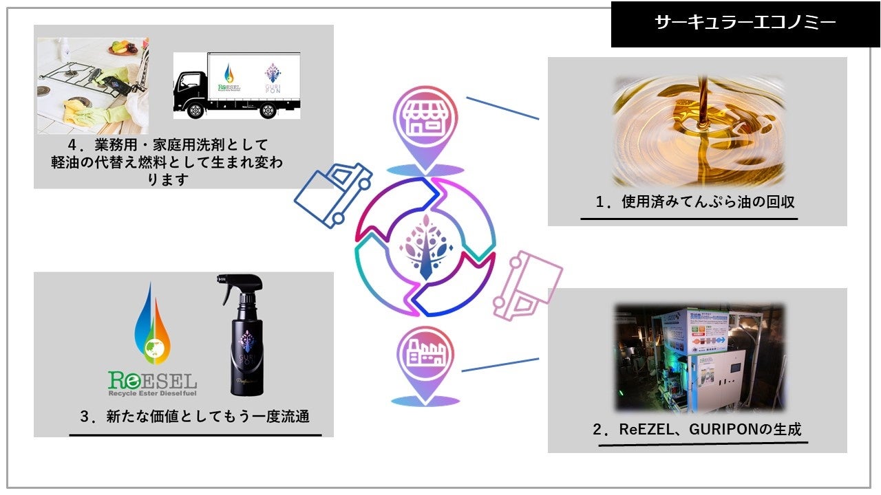 - 廃食用油を洗剤・燃料として流通させていくサーキュラーエコノミー事業