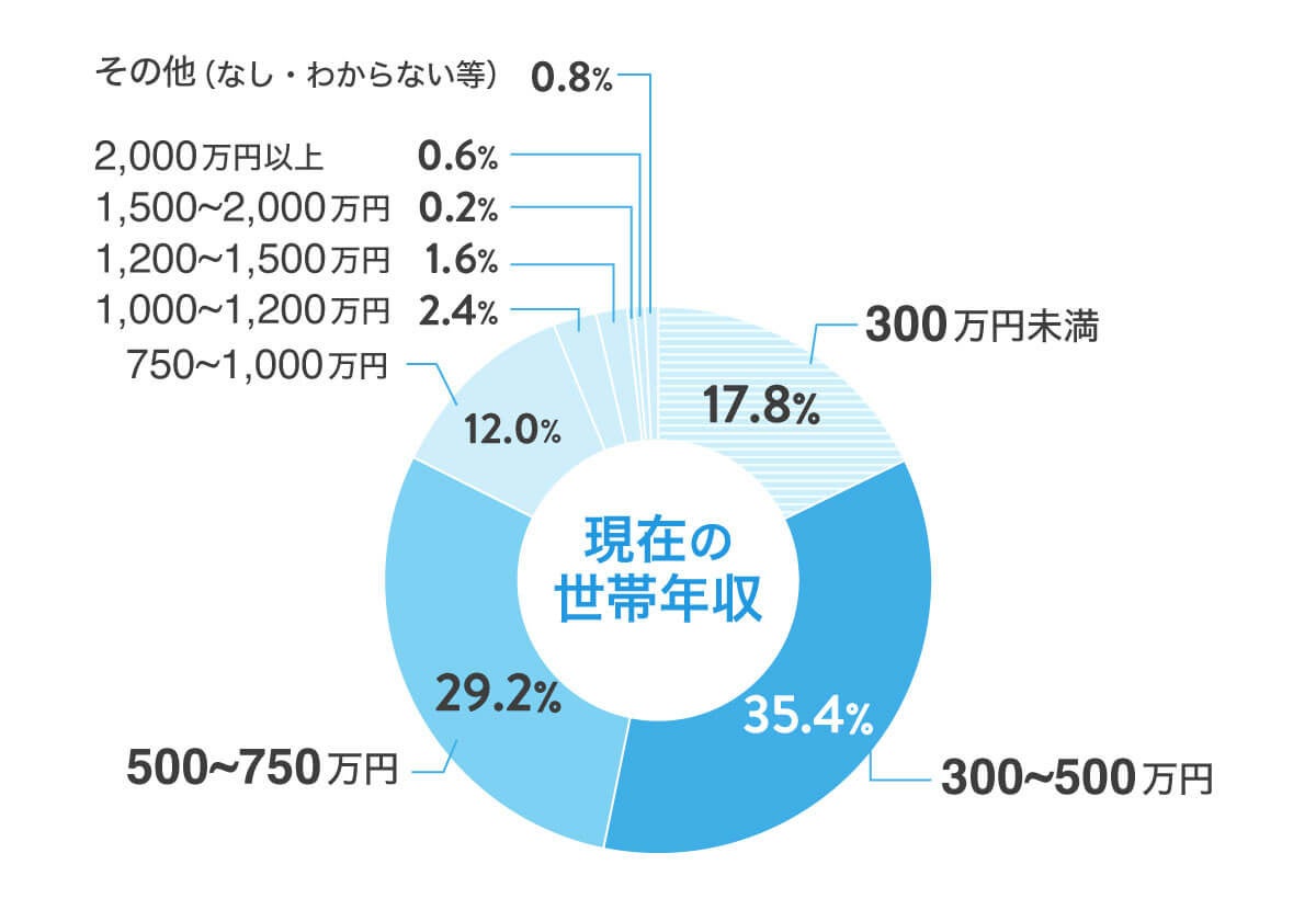 続いて多かったのが500~750万円の29.2%で、年収(世帯年収)が300~750万円の方が半数以上を占める結果となりました。