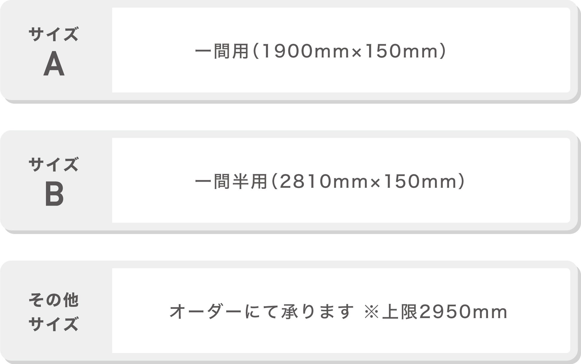 サイズは設置したいカーテンレールに合わせて、2タイプからお選びいただけます。2タイプに該当しない場合も、2950mmを上限としたサイズのオーダーも可能です。
