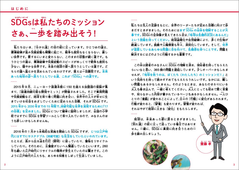 株式会社実務教育出版(本社:東京都新宿区、社長:小山隆之)は、齋藤孝氏による書籍『1日5分で未来が変わる! こどもSDGs大図鑑365』を2022年7月21日に発売します。